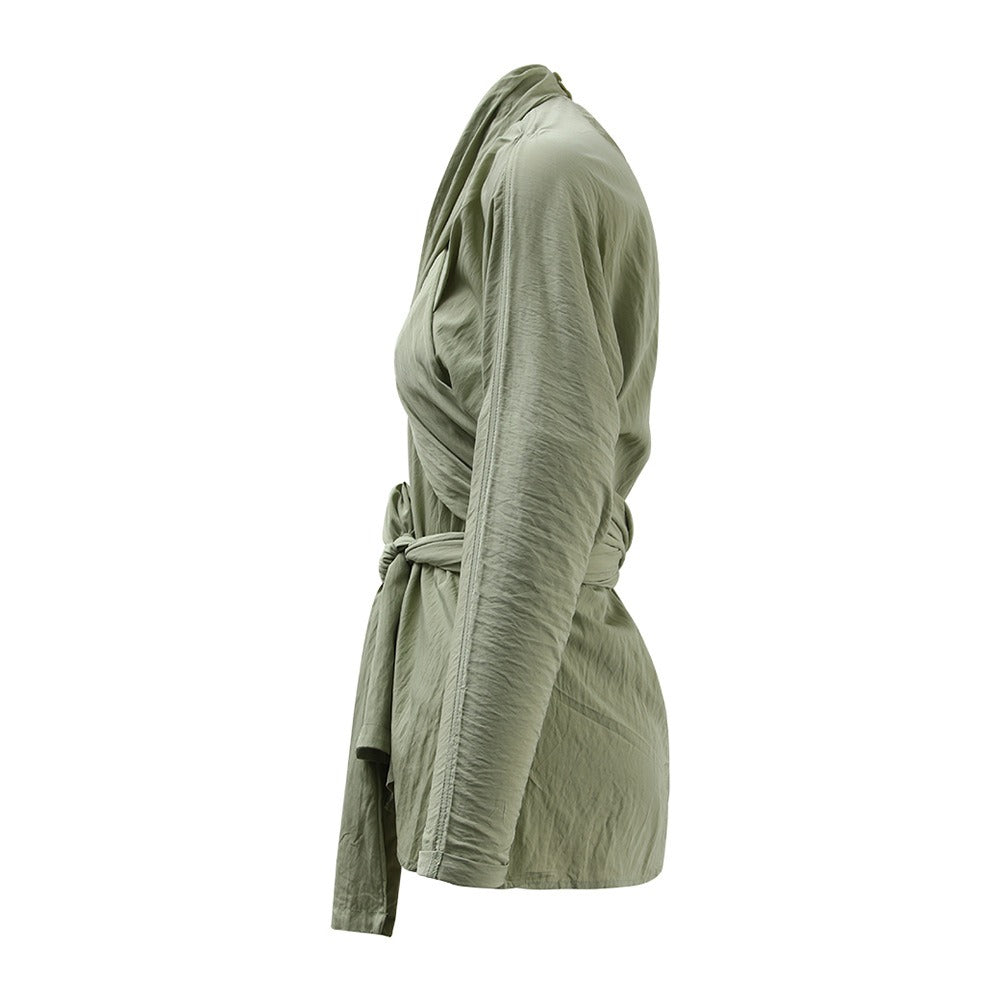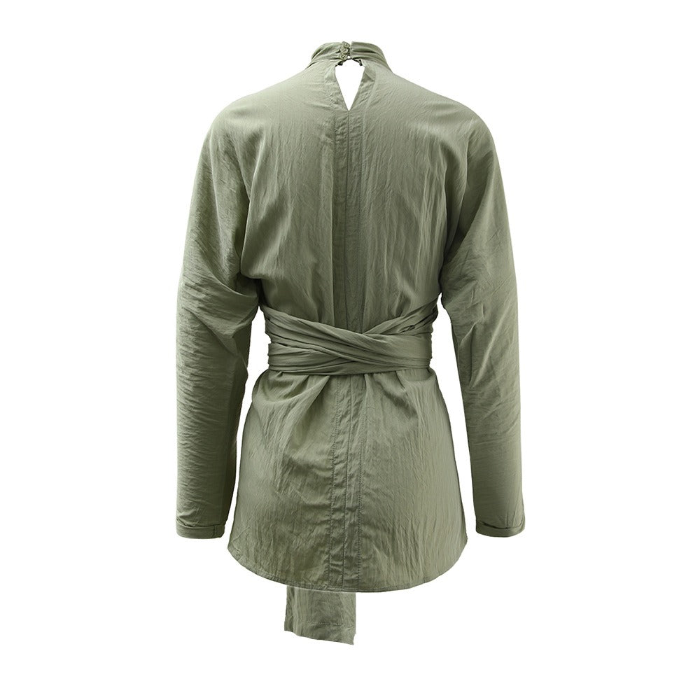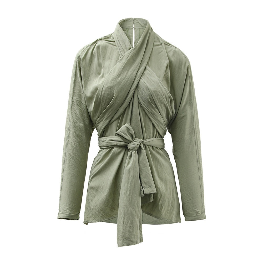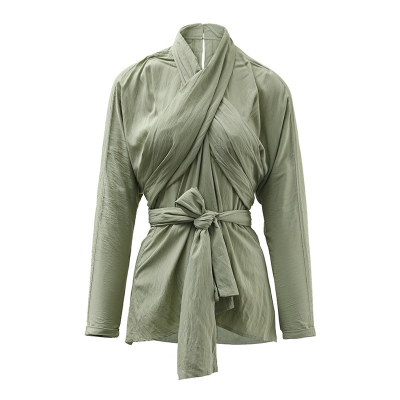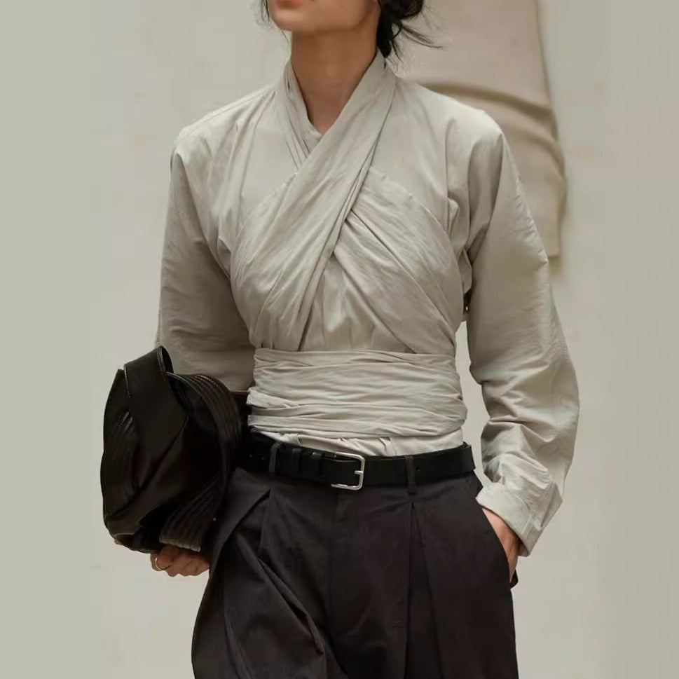 French retro cross tie top, women's autumn new style, personalized design sense, irregular slim fit, slimming shirt