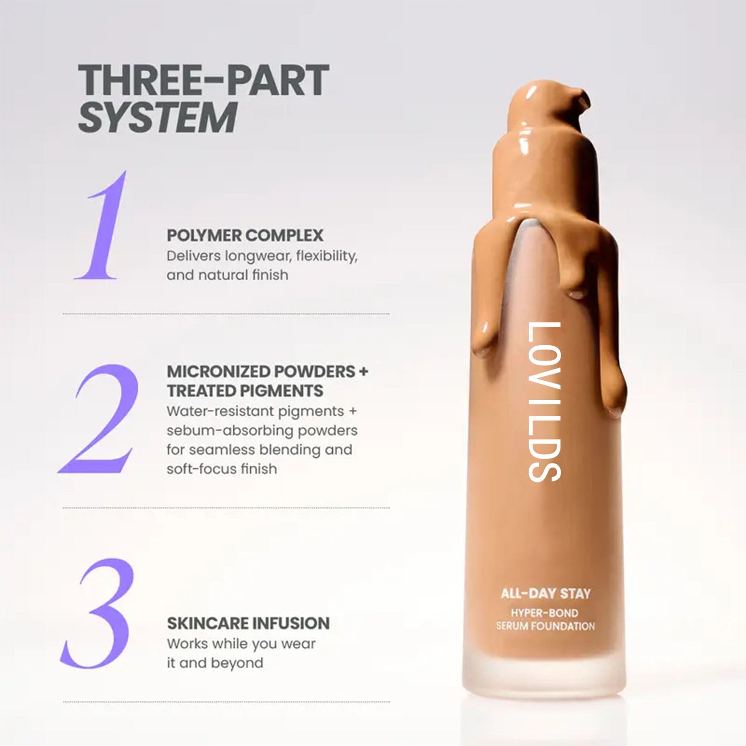 Our foundation is powered by hyper-bond technology ā a fluid matrix that locks onto skin in 5 minutes and lasts 24 hours.