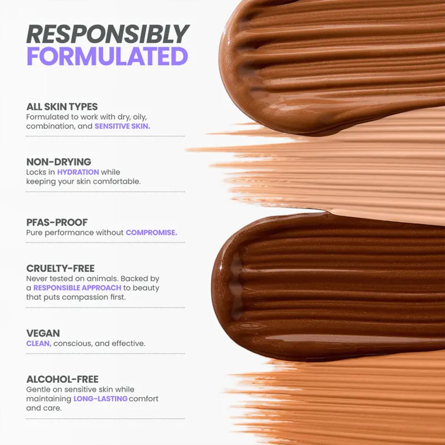 This science-backed formula delivers serum-infused, all-day wear with a natural, radiant finish. Weightless. Comfortable. Never cakey. Just unstoppable coverage with skincare benefits built in.